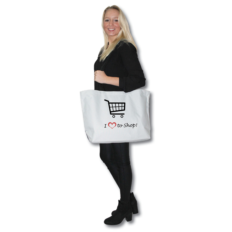 Ruime shopper in 2 tinten grijs met foto. Deze tas kan gebruikt worden voor boodschappen maar ook prima fungeren als strandtas qua inhoud. De lichtgrijze zijde is te bedrukken met een foto of tekst. De foto zal wel donkerder uitvallen door de grijze ondergrond.